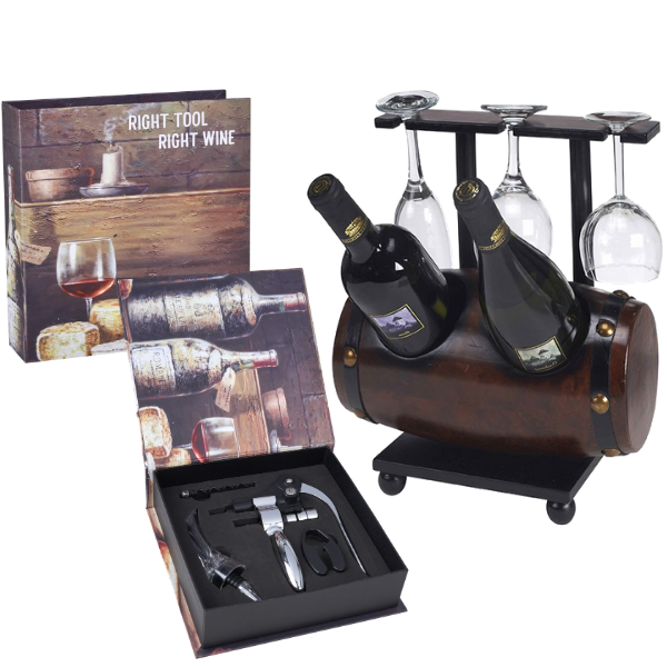 בר יין חבית שוכבת ל-2 בקבוקים ו-3 כוסות