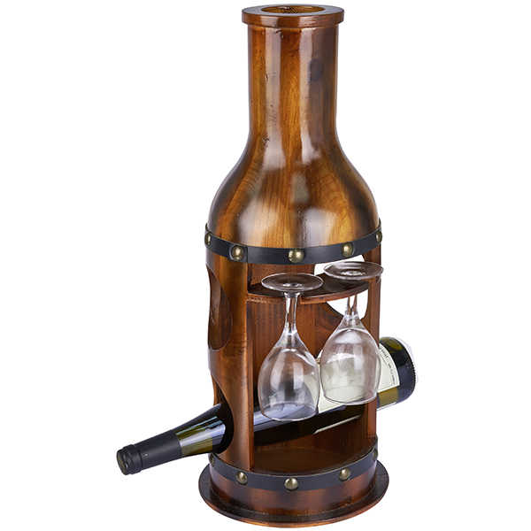 בר יין עץ בצורת כד ל- 2 בקבוקים ו-2 כוסות