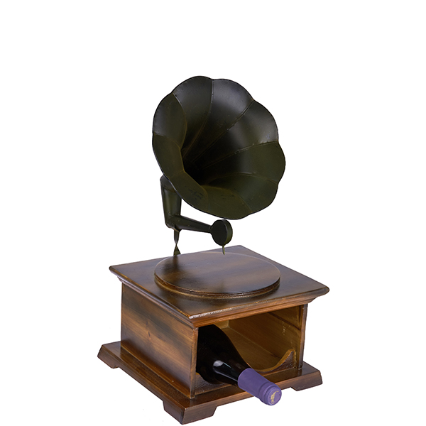 בר יין עץ בצורת גרמופון ל- 2 בקבוקים