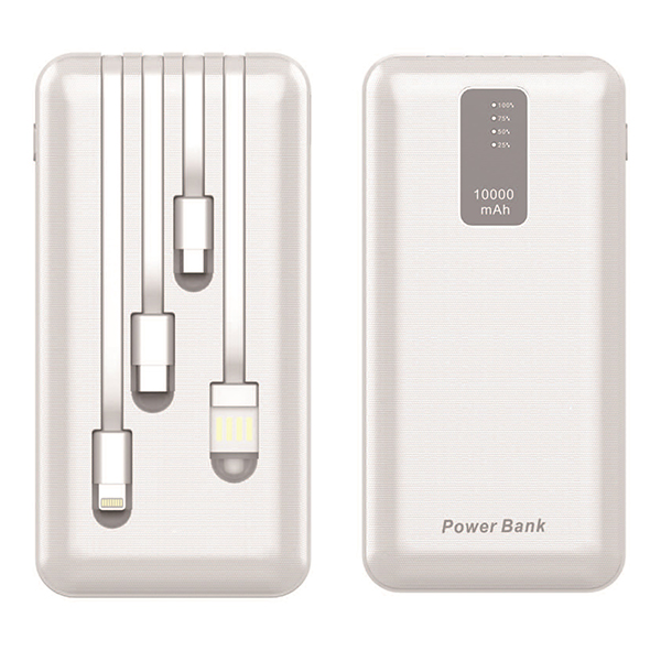 פאוור בנק עם 4 כבלים מובנים בגוף המטען 10,000mAh טעינה מהירה, שתי כניסות, 4 יציאות