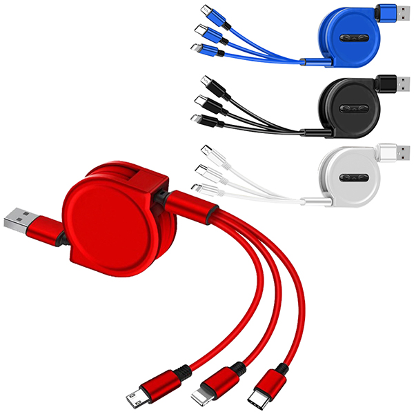 כבל טעינה קפיצי בגלגלת אוניברסאלי 3 ב-1