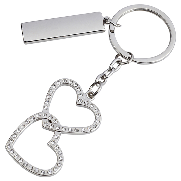 מחזיק מפתחות "זוג לבבות משובצים" + לוחית