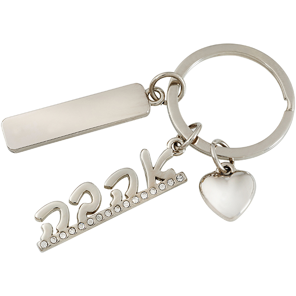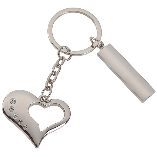 מחזיק מפתחות לב עם "לב יהלומים" קטן משולב