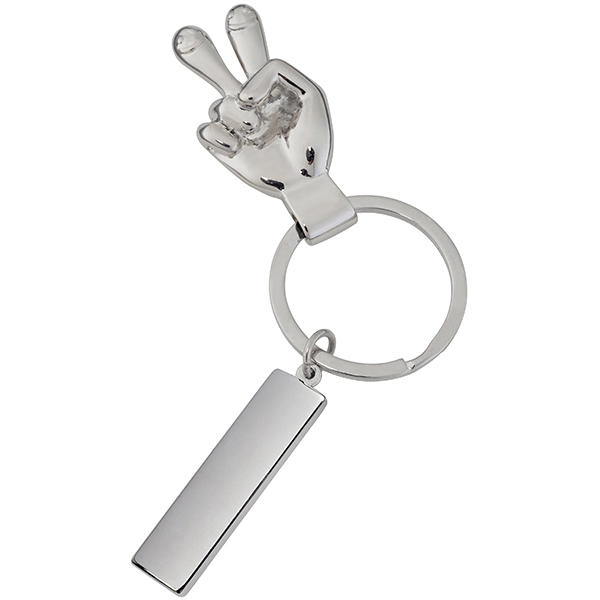 מחזיק מפתחות כסוף מבריק, שתי אצבעות "V" באויר