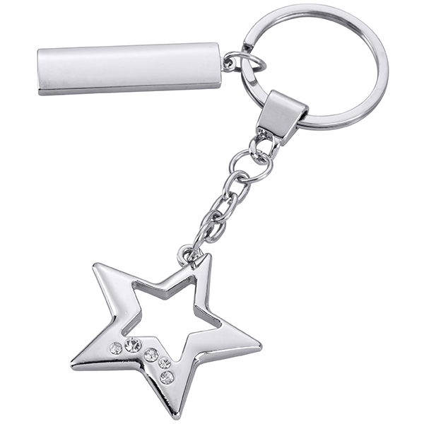מחזיק מפתחות כסף מבריק כוכב חלול בתוך כוכב + לוחית
