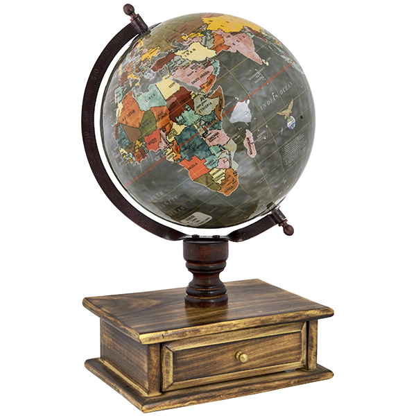 גלובוס עתיק קשת מתכת על בסיס עץ עם מגרה
